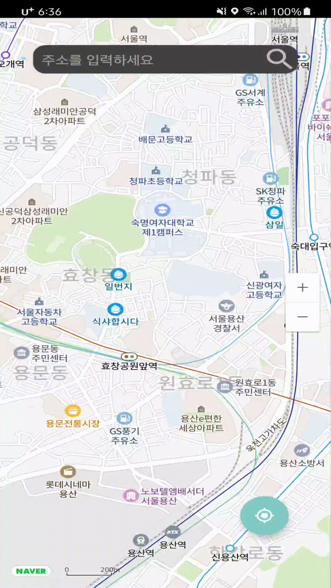 naver map api를 이용하여 현재위치 띄우기, 장소 검색 등을 연습해보았다.